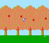 Ce serait sympa de faire un jeu vidéo où l'on incarne un oiseau. Simple idée lancée en l'air... qui retombe s'insérer dans votre Famicom. Hé oui, ça existe déjà ! On le sait, ça vit d'air pur et d'eau fraîche, un oiseau. Mais cela vit surtout, à en croire le jeu, de la chasse aux papillons. Perchés dans leur nid, en sécurité sur leur grand arbre, les deux oisillons attendent que maman ou papa attrape un à un les papillons qui batifolent et vienne ensuite leur apporter. Quand il a faim, junior s'agite. Lorsque le repas traîne, il remue plus fort encore, puis c'est l'abattement, et s'il n'est pas sustenté rapidement, il devient un petit ange : c'est le décès; pour vous aussi, qui perdez une vie. En revanche, si la nourriture arrive toujours à temps, petit oiseau devient grand et s'envole du nid. Et lorsque celui-ci est vide, bravo ! vous avez terminé le niveau. C'est ainsi pour tous les suivants, hormis ceux bonus. D'un peu de chasse et de pêche, un oiseau a aussi besoin, alors pour changer, il y attrape des poissons volants et des pommes. Mais jamais rien ne l'empêche, l'oiseau, d'aller plus haut. Pourtant si ! le haut de l'écran. Le scrolling est seulement horizontal et forme une courte boucle dont l'arbre est le point de départ. Il n'est pas recommandé de s'éloigner trop longtemps. « Mais je suis seul dans l'univers... », songe le joueur inquiet à la tête de sa famille monoparentale. « J'ai peur du ciel et de l'hiver, mais surtout du premier ! » Le ciel effectivement est mal famé. Au début il n'y a qu'un aigle qui plane, puis dans les niveaux suivants arrivent le pivert, l'épervier, l'écureuil volant, les abeilles et le pire de tous, le rat kangourou, l'emmerdeur de service, l'équivalent du crado qui veut à tout prix vous poser la main dessus. J'ai peur des fous et de la guerre... et maintenant aussi des oiseaux agressifs qui s'allient à des rongeurs bondissants ! J'ai peur du temps qui passe, dis, existe-t-il un moyen de l'arrêter ? Ah si, d'amour ! Mais l'amour dont on m'a parlé, sur maman oiseau qui aime ses bébés, cet amour que l'on m'a chanté, suffira-t-il à vaincre ? La plupart du temps, oui, mais il y a une autre solution. Ce sauveur de l'humanité et des plumidés, c'est le champignon. Notre oiseau peut le saisir avec ses pattes, juste par contact, pour le lâcher ensuite sur ses prédateurs. Comme tel, ce n'est pas très efficace à vrai dire, car il se contente de les assommer très brièvement. Mais cette attaque a aussi un autre effet... elle fait apparaître des bonus particuliers. « Je n'en vois pas la trace, dis, est-ce bien vrai ? », se demande toujours notre méfiant lecteur. Oui, mais je ne veux pas en dire plus, il faut être attentif et il y a certaines conditions à remplir. En tout cas, grâce à ça, vous pourrez obtenir l'escargot-montre et le gland d'invincible vélocité, qui sont beaucoup plus utiles que leur modeste apparence le ferait croire. Au point que vous vous demanderez, après avoir essayé l'un ou l'autre, comment peut-on vivre sans lui ? Sous quelle étoile, dans quel pays ? Où donc puis-je les trouver ? Ce n'est pas si compliqué en fait, car le jeu a une structure primitive. Comme chaque niveau forme une boucle, eux-mêmes sont pris dans deux boucles plus grandes de douze niveaux, chacune d'elles ayant les mêmes décors. Lorsqu'on arrive au terme de ces niveaux, le jeu reprend, en plus difficile. Une nouvelle boucle ! Dans la seconde (round 13 à 24), le nid est allongé et accueille désormais trois oisillons au lieu de deux. Dans la troisième (round 25 à 36), le nid, qui jusqu'ici était immunisé contre les attaques, ne l'est plus; c'est-à-dire que le joueur peut s'y faire tuer. Et là, enfin, au 36, vous avez droit à une fin. Au-delà, le jeu recommence encore une boucle, mais cette fois-ci, il se répète inlassablement. Enfin, je suppose, je n'ai pas vérifié. Mais étant donné qu'on peut choisir tous les niveaux jusqu'au 36 pour les tester individuellement dans le mode Study Game, il doit s'agir de la fin effective. Ce que le joueur moyen retiendra, lui, c'est qu'au bout de 6 niveaux le graphisme se répète. Du début du printemps au début de l'automne, c'est le cycle de la vie ! Je pense que ça devrait être assez clair maintenant. Toutes les chances sont de votre côté ! Je n'y crois pas, je n'y crois plus, je suis perdu avec tes histoires de boucles... C'est bien joli tout ça, mais j'en ai marre d'être roulé et tué par ces maudits rapaces ! Et puis, ces niveaux qui tournent en rond, c'est une arnaque conçue par des marchands de liberté ! Ca me gonfle de rater si souvent ces foutus papillons et d'écouter se lamenter mes gosses. Et ces abeilles... Si ça continue je vais devoir mettre ma gueule dans la glace, dis. Est-ce que je dois montrer les dents ? Parce que j'ai rudement envie de mordre, moi. Ou est-ce que je dois baisser les bras ? Oh, et puis merde ! Je ne sais plus, je ne sais pas, je suis perdu, c'est game over une fois encore. Je hais ce jeu ! Je vais me soulager avec du Duck Hunt. Non, ce n'est pas un beau roman, ce n'est pas une belle histoire, et ce n'est certainement pas une romance d'aujourd'hui, rien qu'une anecdote de nombreux hiers. Même en 1986, à sa sortie, c'est pour ainsi dire déjà du retrogaming. La Famicom cette année-là accueille des classiques comme Zelda, Metroid, Gradius, Dragon Quest... des jeux avec un développement narratif et de vraies fins. Bird Week ressemble lui presque au concept d'un Game & Watch. La plupart des joueurs modernes n'accrocheront que cinq minutes. Il en vaut quand même un peu plus, ne serait-ce que pour son originalité. Accordez-lui une après-midi, vous l'aimerez peut-être un peu mieux à la fin. Mais ceux qui vraiment lui donneront leur affection, sont les amateurs de ces Game & Watch, de Donkey Kong, d'Atari, de série d'arcade, avant que le jeu vidéo prenne son essor, avant qu'il quitte le nid qui l'a vu na