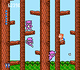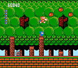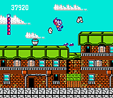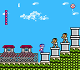 Prenez Superman, retirez la première syllabe, et qu'est-ce que vous obtenez ? Perman* ! Un apprenti super-héros, né sous la plume du dessinateur bicéphale Fujiko Fujio. Les créations de ces deux messieurs ont souvent été vues sur Famicom, la plus populaire de toutes étant bien évidemment le chat-robot bleu Doraemon, dont les nombreuses adaptations sur consoles seront le sujet d'autres tests dans un futur pas si proche. * ou Parman. Le japonais est une langue fluide. Le manga Perman a été lancé en 1966, puis repris en 1983, accompagné de dessins animés durant les mêmes périodes. Quand Irem sort son jeu en 1990, Perman n'est donc plus d'actualité, mais sa série est parfois rediffusée et il lui arrive encore de faire des apparitions dans Doraemon. On vous avait déjà parlé du Kryptonien aux muscles d'acier sur Master System, mais Perman est décidément d'un autre genre. Autant le personnage que son jeu. Le Superman de l'histoire, renommé Birdman en 1983, est un extra-terrestre dans une soucoupe volante à la recherche de disciples pour protéger l'univers. Sur Terre, il choisit un écolier, Mitsuo Suwa, pour devenir Perman. C'est-à-dire Perman Nº 1, car il y en a d'autres : Perman Nº 2 est Booby, un singe dans un zoo; Perman Nº 3 est Sumire, une enfant star; Perman Nº 4 est Houzen, un jeune bonze. En gardant leur identité secrète, ils travaillent ensemble pour arrêter des criminels et autres super-vilains locaux. Le point de départ du jeu est justement cette soucoupe volante de Birdman, qui a été volée par le Dr Mad. C'est à Perman et ses amis permanents de la récupérer. On débute dans un niveau urbain bien japonais, un terrain vague qui rappelle ceux vus dans les dessins animés, quand les enfants rentrent de l'école ou errent dans leur quartier. Le décor est varié, les couleurs estivales, la progression aisée parmi les karatékas irascibles. Perman a le poing un peu court, ce qui lui vaut quelques ratés, mais cela change très vite dès qu'il a mis la main sur le poing-tir ou sur le pistolet. Mitsuo peut aussi éliminer ses adversaires d'un classique saut sur la tête. On ramasse des badges, un P avec un oeil qui est le logo de Perman et dont l'usage nous sera révélé plus tard. Des glaces et des gâteaux assurent notre satiété. Tout se passe très bien et on est assez charmé par ce premier niveau, auquel il ne manque que les passages et les secrets d'un Super Mario. Mais immédiatement après, pas de prolongation, pas de sous-niveaux ou de sections supplémentaires, nous voici déjà au boss. Si tout, jusqu'ici, était frais mais relativement traditionnel, les combats de boss en revanche ne le sont guère. Hormis le tout dernier, le Dr Mad, tous se déroulent dans un jeu de plateau ! Vous avez bien lu, un jeu de plateau, avec des cases et un dé, qu'on lance chacun son tour. On garde nos vies et nos badges et l'on peut gagner de deux façons : soit en arrivant sur la case Goal en premier, soit en battant le boss comme on les bat tous : en leur vidant leur barre de vie. On expédie un coup à chaque fois que l'on tombe sur une case blanche ou, plus violent, sur une case POW. Il y a des cases friandises pour se restaurer, des cases ? qui sont bonus ou malus, passe un tour ou recule de tant de points, et puis des cases P. Quand le boss tombe dessus, il nous prend un badge, quand c'est nous, on fait appel à un des trois autres Perman qui frappe ou soigne. La formule de jeu est toute simple, assez amusante, mais aussi presque entièrement vouée au hasard. Le seul facteur stratégique est de savoir quelle direction prendre aux rares bifurcations et à qui on va demander de nous aider. C'est ce qui explique pourquoi le premier niveau est aussi court et pourquoi les suivants le seront peut-être autant : n'ayant que peu de contrôle sur l'issue du combat de boss, on a de bonnes chances de perdre et de devoir recommencer le niveau. La brièveté et la facilité des parcours jouent alors en leur faveur. Il faut avouer que c'est bien pensé. Tous les niveaux sont agréables à traverser alors les refaire n'est franchement pas une corvée. Et puis, dans la pratique, on a souvent plus de chance qu'on l'imagine et il doit être rare que l'on ait à refaire un de ces combats au dé jusqu'à l'agacement. Pour ce test en tout cas ce n'est pas arrivé. Mais c'est aussi qu'on bénéficie d'une aide inattendue. Dans chaque niveau il y a une porte, un peu comme la porte n'importe où de Doraemon; elle mène à un personnage qui préside un mini-jeu. Si l'on gagne, il nous offre un 1UP ou un item qui permet de nous donner un avantage contre le boss. Ces mini-jeux ont deux formes : un jeu des différences et le classique jeu de la taupe, où l'on tape avec un maillet sur des bandits qui sortent de 6 trous. Mais c'est le premier qui a retenu notre attention. Simple et bien réalisé, il est étonnamment sympathique car les différences changent, leur nombre aussi, rendant chaque partie unique. Je ne m'étais pas autant amusé avec ça depuis Mickey Poche ! Et quid des niveaux suivants ? Sont-ils aussi courts que le premier ? Le second l'est en fait encore plus, c'est le plus court de tous ! On traverse une avenue bordée de petits immeubles où sévissent des hommes invisibles dont on ne voit que les baskets ou le t-shirt. En renversant un seau de marmelade sur eux (c'est peut-être de la peinture mais j'ai faim), ils prennent forme humaine. Ce niveau s'achève malheureusement juste quand il commence à être amusant. Il a un petit secret à découvrir, autrement on ne finit qu'avec un badge. Après ça vient l'ascension d'un trio d'arbres habités par des ninjas, c'est un niveau tout à la verticale et ici, pour la première fois, on a la possibilité d'incarner un autre Perman, le singe Booby. C'est le seul mis à notre disposition, évidemment parce que c'est le plus rigolo. Il se contrôle comme Mitsuo mais il est un peu plus flexible. Tous les deux sont vi