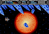 A shoot'em up exceptionnel, intro exceptionnelle, celle de Gaiares tient presque du court métrage tant ses auteurs ont de choses à dire. Certes ils le disent dans un anglais parfois un peu embarrassant, mais leur bonne volonté fait oublier cela. Ils ont un message à faire passer, et un shoot'em up avec un message, c'est un peu comme un Diable de Tasmanie avec du vocabulaire, ça surprend et ça peut même intéresser. L'intro de Gaiares est donc longue, ce qui bizarrement n'est pas si rare dans les shoot'em up, genre qui à pourtant la réputation de jeter son scénario au placard. Mais un shoot'em up, comme un (space) opéra, ça demande une ouverture en fanfare, digne du spectacle à venir. Ici, beaucoup de texte, plusieurs personnages de style manga en gros plan et animés s'il vous plaît, des vaisseaux, des satellites, même du flashback, c'est la cartouche qui voulait se faire grosse comme un CD. Et au lieu d'exploser comme la proverbiale grenouille, elle nous délivre un message. Ce message, on en devine le contenu dans le titre, "Gaia" voulant dire la terre en grec (c'est fou ce que les concepteurs de jeux vidéo sont instruits), il s'agit d'écologie: vous devez sauver la Terre. La planète à sauver, des aliens à exterminer, blablabla, on connaît tout ça; sauf que, ce n'est pas le cas ici, la Terre a déjà été perdue, c'est une planète morte, dont le système écologique a été détruit par la pollution, par notre pollution. L'action se déroule après l'an 3000, mais au rythme où l'on va, on n'aura pas à attendre un millénaire avant de voir les sombres prédictions de Gaiares devenir réalité. Votre mission, si vous l'acceptez, sera carrément de redonner vie à notre pauvre Mother Earth. Vous incarnez Dan, un pilote émérite avec un atout en or pour réussir sa mission, une arme expérimentale, le TOZ, dont nous parlerons à loisir dans cet article. A bord de son vaisseau, il s'en va buter tous ces terroristes extra-terrestres (c'est bien le nom qui leur est donné !) et ressusciter la planète bleue virée au noir. Telenet aurait pu faire fortune sur le web de nos jours avec un nom comme le leur, c'est toutefois dans les jeux qu'ils firent carrière, toutes sortes de jeux, y compris à caractère érotique. Mais si, mais si, preuve par La longue intro terminée, on n'arrive difficilement à se contenir et c'est avec une fougue toute shmupesque que l'on écrase du doigt le bouton start. Et à l'inverse d'autres jeux, l'intro ne nous a pas trahi. Notre petit vaisseau, solidement carrossé et bien fichu (pas comme chez Toaplan), s'élance depuis sa base sur trois plans de scrolling, sous une musique trépidante qui prend de l'ampleur tout comme nos poumons se gonflent d'exaltation. Au moment où la musique se libère enfin, notre appareil est jeté dans le vide interstellaire. Pendant un court instant, il semble suspendu dans le néant absolu, là où immobilité et mouvements se confondent. Puis il est rejoint par le TOZ, arme fidèle et indispensable qu'on pourrait décrire comme le bras gauche de Megaman, et soudain tout s'anime, les vagues ennemies surgissent, les tirs traversent l'écran comme de mortelles étoiles filantes et les explosions s'épanouissent telles des fleurs de l'espace. Dès ce premier niveau, Gaiares nous explique avec ses mots bien à lui - un vocabulaire purement artistique - pourquoi il est un jeu exceptionnel, où on ne s'y ennuie pas car il ne s'autorise pas à rester longtemps dans une même situation. Même s'il démarre d'une façon semblable à R-Type, là où le niveau du jeu d'Irem se poursuit et se termine dans une base, Gaires varie lui les environnements avec brio. Il ne faut guère longtemps avant d'arriver en vue d'un champ d'astéroïdes aux abords d'une gigantesque planète. Aussitôt après, on enclenche les rétrofusées pour affronter à une vitesse infernale un mini-boss au milieu de débris spatiaux. Puis l'action ralentit de nouveau et l'on survole un paysage d'inspiration terrienne avant d'entrer dans une caverne qui mène au boss. Gaiares ne nous laisse pas le temps de nous encroûter dans un même décor, et cela, on ne peut que lui en être reconnaissant. Les niveaux suivants confirment cette variété tout en étirant la taille du parcours. On ne peut pas dire qu'ils obéissent à une thématique précise, à l'inverse de Thunder Force III par exemple où chaque planète est régit par un élément; le niveau 2 est cependant le plus facile à catégoriser dans un thème, en l'occurrence la glace et l'eau. C'est un niveau long, qui soulève le point de la difficulté, mais qui démontre au mieux ce dont Gaiares est capable. Une fois encore les environnements changent régulièrement (à voir dans nos photos), les ennemis aussi avec des monstres mécaniques qui brouillent la notion entre simples vaisseaux et mini-boss, et c'est également une vitrine technologique pour montrer ce que de bons programmeurs peuvent accomplir avec la Megadrive. Scrollings multiples, rotations de sprites, distorsions, filtres, des effets que la Super Nintendo a popularisé et affiné grâce à son hardware mais que l'on trouvait déjà sur Megadrive. La scène aquatique par exemple, du moment où une salle entière est submergée jusqu'à la confrontation avec l'inoubliable boss final, la sirène de métal prisonnière de sa conque-forteresse, est un modèle du genre, une véritable scène culte qui, pourvu qu'on ne meure pas toutes les dix secondes, nous prend aux tripes comme le ferait le dénouement final d'un grand film. Les auteurs de Gaiares aiment aussi s'amuser avec leur vaisseau protagoniste, pas simplement comme objet de destruction, mais comme objet de mouvement ainsi qu'on peut le voir par exemple dans la transition entre le niveau 2 et le niveau 3, où l'on survole l'atmosphère terrestre avant de s'envoler à la vitesse de la lumière vers une nébuleuse lointaine. Ce troisième niveau souligne une autre qualité de Ga