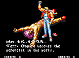Congratulations !! Vous avez démoli le testeur ET trouvez la fin cachée ! Terry vous salue de la casquette, Andy vous applaudit, Joe s'incline, Mai vous fait les yeux doux, Kim serre le poing, Jubei mange un biscuit, Cheng vous avance de l'argent, Big Bear klaxonne, Billy astique son bâton, Axel s'éponge les aisselles, Laurence est mort encorné par un taureau et Krauser est en extase devant vous. Victoire totale !