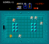 "Chaque génération a une légende, chaque aventure un premier pas, chaque saga un commencement..." Voici tout d'abord l'histoire, telle qu'elle est racontée dans la notice. Des éléments d'importance ne figurent en effet pas dans l'intro du jeu, Impa par exemple, qui est pourtant évoquée dans les autres Zelda. Devant vos yeux s'étend la grande plaine d'Hyrule. Enfin... pas exactement. C'est plat certes, 2D oblige, mais on ne peut pas vraiment dire que ça s'étend. Des parois bordent l'écran. Qu'importe, plaine ou pas, c'est bien Hyrule, l'Hyrule des débuts. Un Hyrule aussi vrai que celui des histoires suivantes, un Hyrule de 128 écrans qui ne demande qu'à être exploré, qui appelle l'aventurier assis sur sa chaise, les yeux fixés avec intérêt sur la télé, sur son premier choix: quatre chemins, une grotte et trois passages. Il ne s'en rend pas compte, mais l'aventure a déjà commencé, par le mystère au-delà de ces chemins, par la pointe de curiosité et d'excitation qu'il sent naître en lui, et par le choix à faire qui pèsera peut-être sur son destin. Mais l'aventurier tente toujours sa chance, autrement il resterait chez lui à regarder la télé. Alors il entre dans la grotte. Oh, un vieil homme en robe rouge. Prévenant avec ça, il le met en garde contre les monstres qui rôdent et lui donne une belle épée de bois à la garde verte que votre petit bonhomme de Link brandit avec un ravissement qu'il n'a jamais perdu. Ce petit bout d'arme bien utile qui ne vous quittera plus (à moins d'être l'un de ces joueurs fous qui apprend à faire l'aventure sans), est le premier d'une longue liste de petits objets magnifiques à récupérer, et il est le signe officiel que l'aventure est lancée. Something In The WayPetit par-ci, petit par-là, ben oui, tout est petit dans ce premier Zelda, mais c'est charmant et la qualité de l'aventure n'en faiblit jamais. Au contraire, le style est délicieux, tellement envoûtant que le premier contact est un choc inoubliable, comme avec Super Mario, qui vous reste toute votre vie. Au sortir de la grotte, un monde nouveau s'offre à vous, vous n'avez plus peur de faire de mauvaises rencontres, mieux même, vous avez envie d'en faire. Et il ne faut pas longtemps pour que votre voeu se réalise. Les monstres sont partout, ils pullulent dans Hyrule: ils rôdent dans les clairières, chassent dans les bois, arpentent les bords des lacs et des cours d'eau où le sournois Zora se cache, ils hantent aussi les cimetières, tandis que les plus forts d'entre eux ont élu domicile sur les sommets d'Hyrule et dans le dédale de donjons souterrains. Ils ne font pas vraiment peur parce qu'ils sont petits bien sûr et assez mignons. Mais n'allez pas croire qu'ils se laissent abuser par ce genre de flatterie ! Méfiez-vous des Octoroks rouge ou bleu qui crachent des rochers de leur bouche têteuse. Craignez les Moblins redoutables guerriers à la face de bulldog. Fuyez les fleurs tournoyantes, mortelles et indestructibles tant qu'elles sont en mouvement. Ne touchez pas à Armos, que le moindre contact tire de son sommeil de pierre. Heart-Shaped BoxLa surface d'Hyrule n'est cependant qu'un monde paisible au regard de ce qui se passe au-dessous. Aux quatre coins du pays se trouvent dissimulés 9 donjons, 9 palais complexes enfouis sous terre et protégés par des créatures qui ne quittent jamais leur sombre demeure. C'est dans huit de ces lieux que la princesse Zelda a caché un morceau du Triforce. Quant au neuvième, il abrite l'esprit du mal qui a capturé la belle jeune fille. Chacun de ces palais ne renferme pas seulement des monstres mais aussi des énigmes qui demandent de se creuser un peu la tête pour pouvoir avancer. Link bien sûr n'hésitera pas un seul instant à s'y aventurer. En explorant bien, il découvrira de précieux objets pour l'aider. Tout d'abord le plan et la boussole qui lui permettront de s'orienter et de localiser les trésors et le boss, le patron de tous les monstres. Ensuite, il ne devra pas manquer de mettre la main sur le trésor du donjon, un objet qui lui apportera une aide inestimable dans sa quête. Tous ces éléments réunis, il lui restera à ouvrir la salle du boss et se livrer à un combat sans merci, où, autant sa dextérité, pour esquiver et bien placer ses attaques, que son ingéniosité, pour trouver le point faible de son adversaire, l'aideront à triompher. Le fragment de Triforce sera alors à lui, ainsi qu'un coeur supplémentaire pour fortifier sa vie bien fragile. Pour devenir fort comme un héros, Link aura besoin, ou au moins envie, de trouver tous ces coeurs, y compris ceux qui se cachent quelque part dans Hyrule. Il lui faudra redoubler d'astuce et essayer bien des choses pour percer le mystère de leur cachette. Mais quel régal de pouvoir enfin mettre la main sur l'un de ces secrets si bien gardé ! In BloomThe Legend of Zelda a été réalisé dix-sept ans en arrière. Ca vous donne plus un méchant coup de vieux que ça n'en donne au jeu qui conserve le même charme, la même facilité d'immersion grâce à une maniabilité incroyablement instinctive. Votre pousse gauche devient les jambes de Link, votre pousse droit ses bras et vous gardez votre tête et vos yeux. La simplicité et l'efficacité avec laquelle tout fonctionne n'en finit pas d'étonner. L'usage du bouclier par exemple, automatique, mais qui ne rend en rien le jeu trop facile. Ou la logique en action pour l'obtention des secrets (les bombes qui détruisent les murs, le feu qui brûle les arbres), rien à voir avec les associations sans queue ni tête d'autres jeux. Même la liberté surprend, on peut pousser très loin dès le début, même visiter des donjons avancés; cela donne un sens accru d'exploration, une absence de barrière à l'inverse de ce que l'on peut ressentir dans des jeux récents comme Super Mario Sunshine ou The Wind Waker ("Il est dangereux de s'aventurer plus loin dans cette direction. Faisons demi-