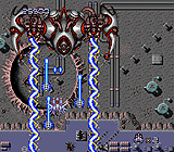 Commencez par tâter de la langue anglaise dans votre propre bouche: choisissez un adjectif excitant, puis un substantif évocateur; associez-les dans une union martiale. Une recette toute simple qui vous permettra de facilement nommer tous les shoot'em up que vous prévoyez de créer dans les années à venir. Mais attention, comme vous le diront les concepteurs de jeux ayant travaillé d'arrache-pied dans le genre sur PC Engine, cela ne garantira pas le succès de votre création. La formule a des chances de se retourner contre vous et entre les "Final", les "Violent", les "Soldier" et les "Blast", votre jeu de passer inaperçu. C'est un peu ce qui est arrivé à Final Blaster. Malgré une pochette aguichante, malgré une réalisation assurée par le respectable Namco, son nom bateau l'a envoyé se perdre au milieu des sorties de l'année 90 de la console, dont nous avions déjà évoqué la densité, elle-même perdue dans la production massive de shoot'em ups sur HuCards et CD-Roms. A moins de faire des indexations encyclopédiques, c'est tout à fait par hasard que l'on échouera dessus. L'occasion saisie, voyons voir s'il n'y avait pas une autre raison derrière sa rapide assimilation dans le limon vidéoludique. Tout commence assez bien, quoique de façon très conventionnelle: l'écran titre sobre, le chapelet de démos silencieuses, la jolie intro pour nous mettre en appétit, puis enfin la musique d'un entrain guerrier et les premières nuées d'ennemis ondulant comme si leur vie en dépendait, ce qui, avouons-le, est exactement le cas. Le vaisseau apparaît affreusement lent de prime abord, mais en laissant errer son doigt sur Select, on se rend compte que l'on peut déployer les ailes et accroître ainsi la vitesse. Une pression n'est pas assez, il en faudra une ou deux de plus pour que les mouvements soient suffisamment prestes pour espérer survivre (soit dit en passant, cela rend les deux premières configurations purement décoratives). Le graphisme est tout à fait correct compte tenu de la console. Il a ses hauts et ses bas bien entendu, pas toujours équitablement répartis; les fonds noirs étoilés par exemple, par trop présents passé le premier niveau, abaissent un peu la bonne impression générale. Mais il recèle aussi de bonnes surprises: le style s'affine au fur et à mesure, les boss sont relativement impressionnants (hormis les second et troisième, un peu miteux) et toute la portion finale, du boss végétal jusqu'à la métamorphose du tout dernier, que précède une pouponnière à la perspective vertiginieuse, est grandiose. Ces monstres ont des gueules bien vilaines de démons "naxatiens" qui font toujours plaisir à voir. Il y a même un niveau d'ambiance mystique, comme dans les shoots Konami, juste avant la plante monstrueuse, où l'on est attaqué par des figures de Nazca. Cependant, dès que la jouabilité devient la préoccupation principale, le jeu se gâte aussi vite qu'un ciel d'été avalé par des nuages noirs. Cela commence au troisième niveau et s'accentue à partir de là, en même temps que la difficulté. Celle-ci obéit à un concept novateur: plutôt que d'apparaître par degrés dans un menu d'options, les auteurs ont fondu ces degrés d'opposition avec le déroulement du jeu. Le joueur ne choisit pas la difficulté, elle lui imcombe. Cela aurait pu être une bonne idée si le mécanisme qui la régule n'était pas d'une simplicité inefficace: il est tout bêtement basé sur la puissance de tir dont on dispose en terminant un niveau. Dans l'écran qui sert de transition, des colonnes de quatre carrés de haut, comme le nombre de tirs, indiquent le niveau de difficulté (level, à ne pas confondre avec les rounds de jeu). Au quatrième, cela devient intolérablement dur et la stupidité de ce système vient en partie de là. Mieux vous êtes armé, plus les tirs adverses seront rapides, réduisant considérablement vos chances de victoire. L'avantage rassurant que donne une arme puissante disparaît, remplacé par l'impression amère de subir un châtiment sans raison d'être. C'est tout l'état d'esprit du shoot'em up qui en est bouleversé, au moins pour le joueur itinérant. Soit on se débrouille pour perdre une vie avant le début du niveau suivant, et ainsi retrouver son tir premier, soit on se tient à l'écart de tous les power-ups oranges comme s'ils ne valaient pas mieux que les ennemis. Parlons-en des ennemis, ce sont des durs à cuire, n'espérez pas les dégommer en un coup. Et ils ne sont pas avares de tirs ! ça fuse dans tous les sens, même par derrière, parfois un temps bien marqué après les avoir laissé passer. C'est la faute à l'aire de jeu, élargie par un second scrolling vertical calqué sur les mouvements du joueur, qui bénéficie mieux aux tirs ennemis sournois qu'au joueur lui-même. Ce "sous-scrolling", qui de toute évidence avait pour but de désengorger l'axe principal, vite saturé, accomplit mal sa tâche. Sa vraie qualité, comme beaucoup d'autres choses dans ce shoot'em up, est d'étaler en grande pompe les capacités de la petite console. Pour faire face, il aurait fallu que le vaisseau du joueur, le Phénix, jouisse d'une force de frappe et d'une résistance égales, malheureusement, c'est loin d'être le cas. Le Phénix dispose bien d'un tir à charge qui prend la forme de l'oiseau mythique, c'est efficace mais deux défauts substantiels viennent en anéantir l'intérêt: d'abord, il est trop lent à charger par rapport au débit ennemi; à peu près trois secondes, et trois secondes sans tirer dans les niveaux supérieurs sous l'assaut adverse, c'est une éternité; surtout que, si la charge est annulée, pas une étincelle ne quittera les canons. Le second problème, lui, est si sérieux qu'il clôt d'office la discussion: il n'est pas possible d'utiliser la charge et l'auto-fire simultanément. Sauf exception des lasers longs, le meilleur tir, tous les autres ont besoin d'être expédié