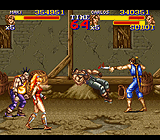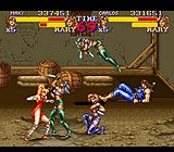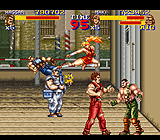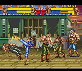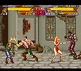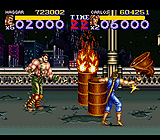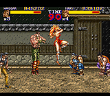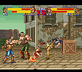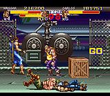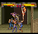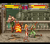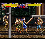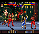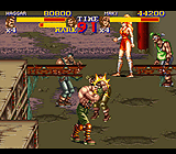 Ding dong ! Toc toc ! Y a quelqu'un ? C'est pour un enlèvement. Avant Final Fight, le terme « beat 'em up » évoquait sur consoles les bonhommes rabougris de Double Dragon. Autant dire que le jeu de Capcom, avec ses personnages tous plus grands les uns que les autres et ses couleurs par centaines, fut un choc, et ce dès que les premières images transpirèrent. Sur les trois continents, il suivit de près le lancement de la Super Nintendo et leur succès mutuel renforça encore le lien qui les unissait. Par le biais de Capcom, Final Fight était la réponse de Nintendo à l'Altered Beast de Sega : « Moi aussi je peux faire dans le style grand et musclé, et en beaucoup mieux. » Comme lui, comme son collègue Gradius III, Final Fight était la conversion d'une borne d'arcade. Aussi impressionnante fût l'adaptation, elle ne s'était pas faite sans casse. Plus de mode 2 joueurs, plus de Guy, le troisième héros, plus que 5 niveaux au lieu de 6 et moins d'ennemis simultanément à l'écran. Mais comme leur nombre total restait à peu près le même, le jeu s'étirait à n'en plus finir. Le finir n'était pas au programme de toute façon, tant la supériorité adverse élevait la difficulté. Un menu d'options bizarrement caché permettait quand même de nourrir quelque espoir. Final Fight fut un joli succès. Il montra d'assez belle manière ce dont la Super Nintendo était capable en matière de cogne à grande échelle. Mais comme Final Fight en 1990 avait éclipsé Double Dragon, il dut à son tour s'incliner face à un autre opposant. Ce furent ses propres parents qui portèrent le coup fatal, quand Capcom adapta sur Super Nintendo, un an et demi après lui, son nouveau hit d'arcade, Street Fighter II. Ce ne fut pas un « joli succès » mais un triomphe qui explosa les records de vente. Après ça, il n'y en eut que pour lui. On se souvenait à peine de l'autre avant. Le Prime arriva en arcade, qui ne tarda pas à être suivi du Turbo, précédant le Super. On attendait le portage de Turbo sur Super Nintendo, quand tout d'un coup... La Suite RéparatriceDeux mois avant Street Fighter II Turbo, une suite à Final Fight jaillit de nulle part, sans être passée par l'arcade ! Personne ne l'avait vu venir. Surtout pas nous qui suivions l'actualité nippone de loin. Le succès de SFII était si récent que tous les éditeurs n'avaient pas encore pivoté pour le poursuivre de leurs imitations. Sans le savoir, nous étions en plein dans l'âge d'or des beat 'em ups, période faste qui prit fin lorsque toutes les visions du combat devinrent uniformes pour n'être plus que des duels. Sega venait de sortir Streets of Rage II et Jaleco une suite à Rushing Beat. Capcom ne voulait pas se laisser distancer dans le genre qu'il avait réveillé. En outre, la Super Nintendo avait suffisamment fait pour Final Fight pour que Capcom comprit que les jeux futurs pourraient se passer de l'arcade et seraient exclusifs à la console. Mais ce retour imprévu avait une autre raison d'être, plus importante, qui était de présenter des excuses au public. Avec Final Fight 2, Capcom s'excusait d'avoir fait une adaptation incomplète du premier jeu, il s'excusait aussi d'avoir pris les joueurs pour des poires en sortant une autre adaptation toujours aussi incomplète, Final Fight Guy. A ce stade, il n'était plus permis d'en annoncer une troisième, définitive, sur Super Nintendo (c'est le Mega-CD qui en hérita), même les joueurs les plus indulgents auraient compris qu'on les faisait tourner en bourrique. Alors arrive Final Fight 2. Trois personnages à choisir, avec Haggar pour doyen, un mode deux joueurs, 6 niveaux complets, des parcours de longueur sensée et une difficulté revue à la baisse et entièrement échelonnée. Toutes les erreurs de Final Fight ont été réparées. Ce n'est pas trop tôt ! Le résultat se fait immédiatement sentir. Première partie, je termine le jeu en Normal avec un credit restant, moi qui n'ai jamais pu atteindre le dernier niveau de Final Fight ! De trop dur, Capcom aurait-il rendu son jeu trop facile ? Non, parce qu'il existe aussi des modes Hard et Expert, et que la fin entière n'est révélée que dans ce dernier. Petit agacement, car Expert en devient alors un mode obligatoire et non plus optionnel réservé aux pros. Mais pour bien des amateurs, la difficulté sera la plus grande amélioration, à parts égales avec le mode deux joueurs, que d'autres éditeurs moins timides que Capcom s'étaient empressés d'ajouter dans leurs beat 'em ups. Cependant, malgré toutes ces nouvelles qualités, malgré un gros chiffre de vente, Final Fight 2 n'est pas devenu un grand classique comme son prédécesseur. La question est de savoir pourquoi... et 1UP en a justement une petite idée. Le Guerrier-TouristeHaggar a été entièrement redessiné mais sa panoplie de coups est exactement la même. La palette de couleurs est plus claire que le jeu précédent. Final Fight en perd son petit côté réaliste, un peu sombre et sordide, pour prendre une apparence plus dessin animé, plus proche de la production Super Nintendo du moment mais surtout de Street Fighter II. Le chef-d'oeuvre de Capcom est désormais un tel incontournable qu'il déteint sur lui, dans le choix des couleurs comme dans la composition des arrière-plans. Parallèle d'autant plus facile que chaque niveau de Final Fight 2 se déroule aussi dans un pays différent. On n'est quand même pas un world warrior puisque l'on traverse juste les extrémités de l'Eurasie, quatre niveaux en Europe de l'Ouest et deux en Asie. D'abord Hong-Kong, avec son quartier populaire et ses quais, ses entrepôts et ses bas-fonds; c'est un mélange assez évident des influences principales (FF1 et SF2). Le suivant se déroule en France et commence de manière touristique avec une terrasse de café face à la tour Eiffel mais prend vite la direction de l'aéroport Charles de Gaulle. Oui, dans la version japonaise, son nom est marqu