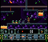Deux noms qu'on connaît bien dans un jeu qu'on connaît moins. C'est un peu comme ça que se présente King Arthur's World pour le non-initié. Le premier nom, c'est Argonaut Software, les développeurs, dont tous les possesseurs de Super Nintendo ou presque ont entendu parler. Ce sont eux qui avaient conçu la puce Super FX pour le compte de Nintendo et participé à sa programmation lors du développement de Starwing. Le second nom est encore plus connu. Que vous ayez eu une console Nintendo ou non, que vous n'ayez même jamais joué à un jeu vidéo (mais que faites-vous ici alors ?!) vous le connaissez. Il s'agit bien entendu du roi Arthur. Arthur Pendragon, fils d'Uther, qui siège à la cour de Camelot avec son épouse Guenièvre, entouré des preux chevaliers de la Table Ronde (Lancelot, Perceval, Galahad...) et de Merlin l'enchanteur. Arthur, le roi qui brandit l'épée Excalibur qu'il a retiré de la pierre ou pris des mains de la Dame du Lac, et qui songe à la quête du saint Graal. Arthur le vaincu enfin, qui sera mortellement blessé par Mordred, fils de la fée Morgane, et emmené sur l'île d'Avalon dont jamais il ne reviendra. Ce souverain mythique et peut-être partiellement historique du VIème siècle, est une figure formidable dont la légende s'étend bien au-delà des îles britanniques et de la littérature médiévale qui l'a façonnée. Alors on ne s'étonne guère de retrouver sa présence jusque dans le retrogaming qui nous est cher. Cependant, s'il a su, même ici, s'élever au rang de superstar, ce n'est pas grâce à ses fidèles sujets anglais, gallois, écossais ou irlandais. Sa célébrité sur consoles, il la doit principalement aux Japonais de Capcom et à la série des Ghouls'N Ghosts qui, même si elle n'a plus rien à voir et invente au héros un autre imaginaire, n'en est pas moins un prestigieux piédestal. Heureusement, on pouvait compter sur les braves compagnons d'Argonaut Software pour ramener Arthur au pays. Là où l'on ferait erreur en revanche, c'est de croire que sous prétexte d'un jeu britannique, il y aurait une plus grande fidélité à sa légende. Pour tout dire, King Arthur's World est presque aussi fantaisiste avec ce grand personnage que ne l'est Ghouls'N Ghosts. A croire que personne n'a cherché à se documenter sur les fascinantes légendes arthuriennes. Que reste-t-il de celles-ci ? Le roi Arthur bien sûr, des chevaliers, des enchanteurs, un contexte médiéval et puis c'est tout. Il ne manie même pas Excalibur mais une masse d'armes ! Il affronte des rivaux fictifs dans des lieux qui le sont tout autant comme la famille Butler et lord Brownjohn aux Tours Windsor, avant de s'aventurer dans les cavernes des gobelins et dans les nuages des sorciers. Pauvre Arthur, malmené par les jeux vidéo ! Mais au fond, n'est-ce pas ce que les auteurs du Moyen Âge, comme le Français Chrétien de Troyes, faisaient eux aussi en lui créant des aventures de toute pièce ? Cependant, l'insulte la plus grave est encore à venir. Le roi Arthur... n'est qu'un lemming, un ver de terre ! S'il a bien forme humaine, le voici plongé dans une interface qui rappelle fortement un classique, Lemmings, et en anticipe un autre, Worms. Notre armée est representée dans un format minuscule, chaque homme fait 16 pixels de haut; la taille d'une icône sur le web, d'une fourmi dans le monde. A l'inverse d'autres jeux, l'univers ici est à son échelle, décors comme ennemis. Arthur et ses troupes doivent pacifier le pays et même, on l'a vu, au-delà, ses souterrains et ses célestes royaumes. Les niveaux sont larges et complexes, beaucoup plus que ceux de Lemmings et, contrairement aux titres de Psygnosis et Team 17, on peut endommager le décor mais on ne peut pas le détruire complètement comme s'il n'était fait que d'une seule pièce. Pour le reste, King Arthur's World mélange adroitement odyssée lemmingien et esprit martial des worms. Un niveau se termine en atteignant le point précis où se trouve le maître des lieux (ou un coffre aux trésors, en entraînement). L'itinéraire est généralement moins compliqué à déterminer que les méandres du niveau le laissent entendre, mais la traversée même est une autre paire de manches. S'il faut déjouer des pièges, s'ouvrir ou se créer des passages, il faut aussi se battre. On dispose de 7 corps de métiers parmi ses troupes: les chevaliers, les archers, les sorciers noirs sont les combattants, les magiciens blancs et les porteurs de bouclier sont spécialisés dans la défense, les ingénieurs et les artificiers enfin ont des rôles pratiques avec aussi un peu d'attaque; le baril de poudre détruit l'obstacle, qu'il soit chose ou créature. Certains parmi eux ont plusieurs fonctions ou techniques: les archers ont trois hauteurs différentes de tir, les enchanteurs possèdent à eux deux sept sorts (boule de feu, foudre, pluie de feu, mort, pour l'un et regénération, protection, force pour l'autre) et les ingénieurs peuvent accomplir cinq actions qui sont: la création de la catapulte, l'érection de la tente qui sert de checkpoint, l'utilisation du bélier pour forcer les portes, la construction de ponts et de plates-formes, beaucoup plus restreints d'usage que dans Lemmings mais néanmoins absolument vitaux pour la progression. Le nombre d'hommes disponibles, tout comme les sortilèges, est limité selon le niveau. De même, c'est leur fonction qui décide combien on en contrôle simultanément, encore qu'il soit possible d'altérer légèrement ces nombres dans le menu d'options. En règle générale, les ouvriers, les chevaliers, et les archers évoluent par groupe de cinq alors que les autres travaillent seuls et qu'il n'est jamais possible d'avoir plus de trois unités en même temps. Tant qu'un homme est vivant, il est permis de le renvoyer à tout instant dans la tente auprès des troupes de réserve. S'il est important de garder ses hommes en vie sous peine d'en manquer et de se retr