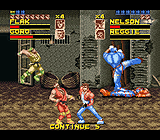 * A propos de la liste : à part les trois premiers points (et même !), elle n'est pas à prendre très au sérieux. Les coups, les ennemis, les armes... tout ça se retrouve chez d'autres aussi. On aurait pu faire la liste de ce que Streets of Rage reprend à Final Fight, ou ce que Final Fight a emprunté aux Double Dragon. Les beat'em ups n'ont jamais été un modèle d'originalité. Ah c'est malin. Môsieur aime vraiment faire le mariole. Tout ça nous empêche pas de les battre. On a réfléchi, nous, avant de le faire notr'jeu. On n'a pas pris les joueurs juste pour des machines à fric en recopiant deux fois un jeu d'arcade (et mal avec ça). On a créé, nous ! Le mieux dans notre patelin c'est quand même le décor. Allez suis-moi, que j'te montre. On commence dans la rue, la vraie, avec ses poubelles bien vertes, puis on passe devant le café avant d'aller prendre l'autobus. Il nous conduit au stade; on passe devant les gradins, on descend aux vestiaires, au parking. Quand on en sort, le soleil se couche sur les quartiers mal famés. Une plate-forme nous sert d'ascenseur, et là, sur le toit d'un gratte-ciel, un hélico nous emporte dans la jungle, façon Bloody Wolf. Et ça continue comme ça pendant encore deux niveaux ! Moi ça me met la larme à l'oeil ces beaux paysages urbains de mon enfance violente. Snif. Regarde-moi ces couleurs éclatantes ! Tu remarques comme le ciel suit le cycle du jour ? Quoi les ennemis sont rigolos ? Attends qu'ils te frappent entre les jambes, tu riras moins. Ils ont des coups vicieux qu'il est difficile d'éviter. Faut anticiper, riposter. Leurs vêtements ? C'est la mode de l'époque, les années 80-90. Fallait sortir plus souvent. Ouais, Reggie ressemble à Michael Jackson. Il avait qu'à pas chanter "I'm bad ! I'm bad !" T'as fini ou t'en as encore d'autres ? Comment ça les boss sont moyens ? Bon, c'est vrai, on se demande d'où sort le premier habillé comme Aladin. Mais le second est plutôt sympa, il appelle une Cadillac à la rescousse. Et puis vraiment, si t'es si malin qu'ça, t'as qu'à faire le boss, toi ! Ca te dirait de prendre des coups du soir au matin, tout ça parce que tu ne veux pas laisser les gens passer par chez toi ? Mais y a un boss qui met tout le monde d'accord, c'est Ice Man. Ce mec il est trop cool. Avec son costard et son masque de catcheur mexicain, on le dirait tout droit sorti d'un King of Fighters. Même son graphisme est d'un cran au-dessus. Respect. Par contre, t'es pas près d'arriver jusqu'à lui. Rival Turf, c'est pas pour les mauviettes. Ces types-là ils te tabassent à donf. T'as 5 vies et 5 continus, tu reprends là où t'as mordu la poussière, mais y a aucune vie en plus, pas même par le score. Le score, en fait, tu vois, c'est le décompte des ennemis que t'as mis KO et ça sert en même temps à activer le super coup. Mais les Street Kings, ils t'usent p'tit à p'tit, et pis ensuite les boss te donnent le coup de grâce. Ouais, la jouabilité est pas toujours très bonne, j'veux bien l'admettre... mais c'est la faute aux ricains !! Ben ouais, quoi, mon gars, faut lire les suppléments. Ecoute, écoute ! La musique, trop forte la musique. Tchou pa, tchou tchou pa. Ca me donne envie de danser !! Allez, je me lââââche !!! Oubaba oubaba... tchi tchi tchi, tcha tcha tcha... toui toui toui toui... Pff ! Alors t'en penses quoi de mon style ? Ouais, je sais, ça le fait pas trop en version texte. Enfin en tout cas la zique est sympa, sans être recherchée. SAUF au dernier niveau. Ca fait vraiment trop rockabilly pour une confrontation finale, surtout quand tu vois la dégaine du boss. Ca aurait pu marcher dans un bar mais pas dans un building high-tech. Ma préférée ? J'ai un faible pour la ville et la jungle. L'effet Guns N' Roses. Mais surtout, surtout... on peut jouer à deux, mec, oui, A DEUX ! C'est pas le Final Fight qu'allait offrir ça, hein ? Et c'est assez bien foutu. On peut activer les coups entre joueurs et y a un mode duel tout con en cadeau. Il a les boules le Final Fight en face, il a les boules, haha ! Regarde-le, là, à faire sa tête à 70%, HAHA ! Flak et Nelson peuvent aussi s'attraper, malheureusement y a pas de prises combinées comme dans Streets of Rage. Mais y a que des nains d'toute façon dans ce jeu-là. Il est indigne de nous. Rival Turf, c'est d'la balle ! Don Jaleco, il était pas aussi fortiche que Don Capcom, mais il a quand même fait un jeu de baston qui tient la route, qui corrige plusieurs des bourdes de Final Fight SNES. On prend plaisir à écraser tous ces minables, à les jeter les uns sur les autres pour les faire culbuter comme un jeu de quilles. Si t'es pas encore convaincu que j'suis le meilleur, va lire le duel de l'année et le micro-test de Rushing Beat, la version japonaise. Ouais, j'étais beau comme un dieu en partant du Japon, ces salauds m'ont amoché quand j'ai débarqué aux Etats-Unis et en Europe. Si j'attrapais ceux qui m'ont fait ça... j'te jure qu'ils passeraient un mauvais quart d'heure. Encore toi ? T'en veux encore ? Eh bien, grosse tête, est-ce que tu savais que le jeu s'appelait Mechanized Police Jack quand il était en développement ? C'est ce que dit Player One dans son numéro de janvier 1992 (NdR: peut-être confondent-ils en fait avec Armored Police Metal Jack, un autre beat'em up Super Famicom de 92). Regarde, les sprites avaient l'air plus beaux à la base — je veux dire, ENCORE plus beaux: ![]() Et donc, Rushing Beat a eu une suite, la même année au Japon, et puis une autre, celle d'après. Les Etats-Unis, ils les ont eues, mais l'Europe, pfft ! Nada. Ca vous apprendra à me traiter comme un pouilleux. En même temps ou presque que Rival Turf, Jaleco avait aussi sorti Super Earth Defense Force (il y a une toute petite référence dans le jeu, l'affiche à gauche). Le beat et le shoot ('em ups), les deux genres par excellence des vieilles consoles, inséparables comme deux frangins. Jaleco publia encore des jeux sur S