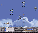 The Rocketeer, un petit film, sympa, distrayant, mais quelconque. On voit difficilement où se trouvait la nécessité d'en faire un jeu vidéo. De toute façon, est-il jamais nécessaire de faire des jeux de tous ces films ? Après huit tests pas franchement optimistes sur la question, on peut en douter. Quoiqu'il en soit, trop tard pour se plaindre, ils l'ont fait. "Ils" étant Disney, producteurs du film, et surtout IGS. En français, IGS, c'est l'Inspection Générale des Services, bien sûr, ça n'a rien à voir, mais on en profitera tout de même pour faire la boutade suivante: qu'une inspection, ce Rocketeer en aurait bien eu besoin. Ca s'annonce mal, personne n'a entendu parler d'IGS avant ou après The Rocketeer. Oho, pourquoi j'ai un mauvais pressentiment tout d'un coup (peut-être aussi parce que j'ai joué au jeu jusqu'au bout) ? Néanmoins, en cherchant bien, on arrive à trouver une liste de jeux à leur actif, qui est non seulement courte mais peuplée de titres inconnus où le seul nom familier est celui d'Alien vs Predator, adapté sur un certain nombre de formats dans les années 90. Re-oho, ça sent le roussi. A leur décharge, ils ne sont que les éditeurs de The Rocketeer, les développeurs en sont Novalogic. Silence ? Non, eux on les reconnaît, car ils existent encore de nos jours, mais peut-être pas pour longtemps vu qu'ils ne font rien d'autre que des jeux de guerre. A fond dans le bourrinage les cocos ! Ils avaient meilleur goût à l'époque de The Rocketeer même si la guerre déjà n'était pas loin, les aventures de l'homme-roquette se déroulant en 1938, à la veille de la second guerre mondiale donc, d'où la présence de nazis en toute légimité sur le sol américain. La trame suit d'assez près celle du film de Joe Johnston et encore plus, semble-t-il, celle du comics, les scènes intermédiaires étant sous forme de bande dessinée. On incarne un jeune pilote, Cliff Secord, qui, afin de sauver sa girlfriend Jenny et son vieux mécano-père-spirituel-meilleur- pote kidnappés par des nazis convoiteurs, enfile un jet-pack expérimental pour devenir le Rocketeer. Malgré son style très rétro, le comics, écrit et dessiné par Dave Stevens, date des années 80 et non d'avant-guerre ! Tout commence sur le tarmac du terrain d'aviation où vous prenez part à une course à bord d'un Gee Bee, un aéroplane de compétition. Ce premier niveau résume assez bien le jeu dans son intégralité: graphismes digitalisés, gameplay simpliste, durée excessive, et difficulté explosive. Plutôt que de "niveau", il vaudrait mieux d'ailleurs parler de "tableau". Le terrain d'aviation s'étend sur trois ou quatre écrans de long, le tableau suivant, dans le hangar, sur deux écrans. Après cela, c'est à dire après avoir joué le premier tableau trois fois et le second deux fois, les concepteurs étant économes et pratiquant soigneusement la politique de recyclage, on se retrouve dans un vrai niveau, avec scrolling, mais celui-ci est si pauvre, la variété tellement absente, que l'on a le sentiment d'être dans un nouveau tableau d'un écran de long dont seuls les sprites changent. L'utilisation de digitalisations, The Rocketeer le fait de manière assez élégante, avec plus de finesse que son contemporain Mortal Kombat, leurs ambitions étant certes bien différentes. Les décors de fond en particulier sont agréables, ils ont bien été retravaillés pour leur retirer la rugosité propre à ce type de graphismes. On ne peut pas en dire autant de l'animation, humaine en particulier, qui conserve elle son côté haché et maladroit. C'est assez rare pour être signalé, The Rocketeer n'utilise que les deux styles de graphisme dont nous avons parlé, c'est à dire les digitalisations et les cases de B.D., elles aussi sans doute passées au scanner. Il n'y a aucune exception. L'écran titre est une digitalisation du film, celui du game over un dessin à l'encre. Le découpage en tableaux lui donne des faux airs de mini-jeux. A cause de Nintendo et de leur nouvelle philosophie imbécile de vouloir transformer le paysage vidéoludique en une collection de mini-jeux, on aurait tendance à les voir partout, y compris dans le retrogaming, mais il faut avouer que l'orientation chosie par Novalogic n'aide pas vraiment à chasser cette idée. Dans la course d'avions, vous devez effectuer une dizaine de tours sur un plan horizontal. Le parcours est prédéfini, tout ce que vous pouvez faire c'est de mettre les gaz, changer d'altitude et de vous balancer d'un côté ou de l'autre. L'épreuve suivante est du tir façon Wild Guns, des ennemis surgissent en continu et vous devez en abattre un grand nombre sans pour autant y laisser la vie. Mais le quota de cibles est si élevé que cela s'éternise et l'on meurt bien avant, en dépit des recharges de vie qui apparaissent sporadiquement. Il n'y a pas moyen d'esquiver, vous devez tuer avant de recevoir des dommages. La troisième étape est du shoot'em up, une horreur de shoot'em up, dans un ciel bien terrestre pour une fois, cependant criblé de parachutistes allemands, de bombes, d'obus, et de missiles comme un ciel alien. Une fois encore cela dure un temps fou, invraisemblable, le temps de traverser trois fois (montre à l'appui !) le premier niveau de n'importe quel R-Type. La jouabilité y est ignoble, les attaques arrivent de partout et n'importe comment, il est impossible d'éviter les minuscules tirs adversaires. Ce n'est pas à la seconde guerre que cela ressemble mais au massacre des tranchées de la première. Novalogic l'a fait, l'une des pires phases de shoot'em up jamais créées. On ne les en félicite pas. Et devinez ce qui vous attend après ce cauchemar ? Vous ne devinerez jamais. La même chose ! Une nouvelle traversée, aussi immense, aussi épouvantable. Avec tout ça ce n'est plus le premier niveau de R-Type qui a le temps d'y passer trois fois, mais le jeu entier ! Quelques dirigeables ont été ajoutés dans 